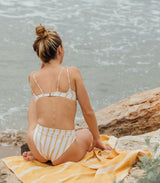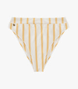 The Sugar High bottom is cut with medium bum coverage and features a retro-inspired high cut leg for an ultra flattering silhouette, with a wide waistband that falls just above the belly button.