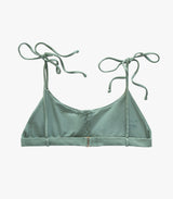 The Button Up top is a bralette top with an adjustable hook-and-eye back, featuring three front center buttons giving it a flirty touch and feminine adjustable tie shoulders for extra comfort.