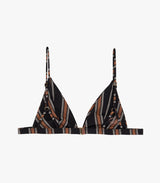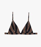 The classic Triangle top with a twist. An essential, fully lined top with a sculpting center seam and an underbust band. Topped with adjustable spaghetti shoulder straps, ending in a triangle shape in the back and a ajustable hook-and-eye closure.